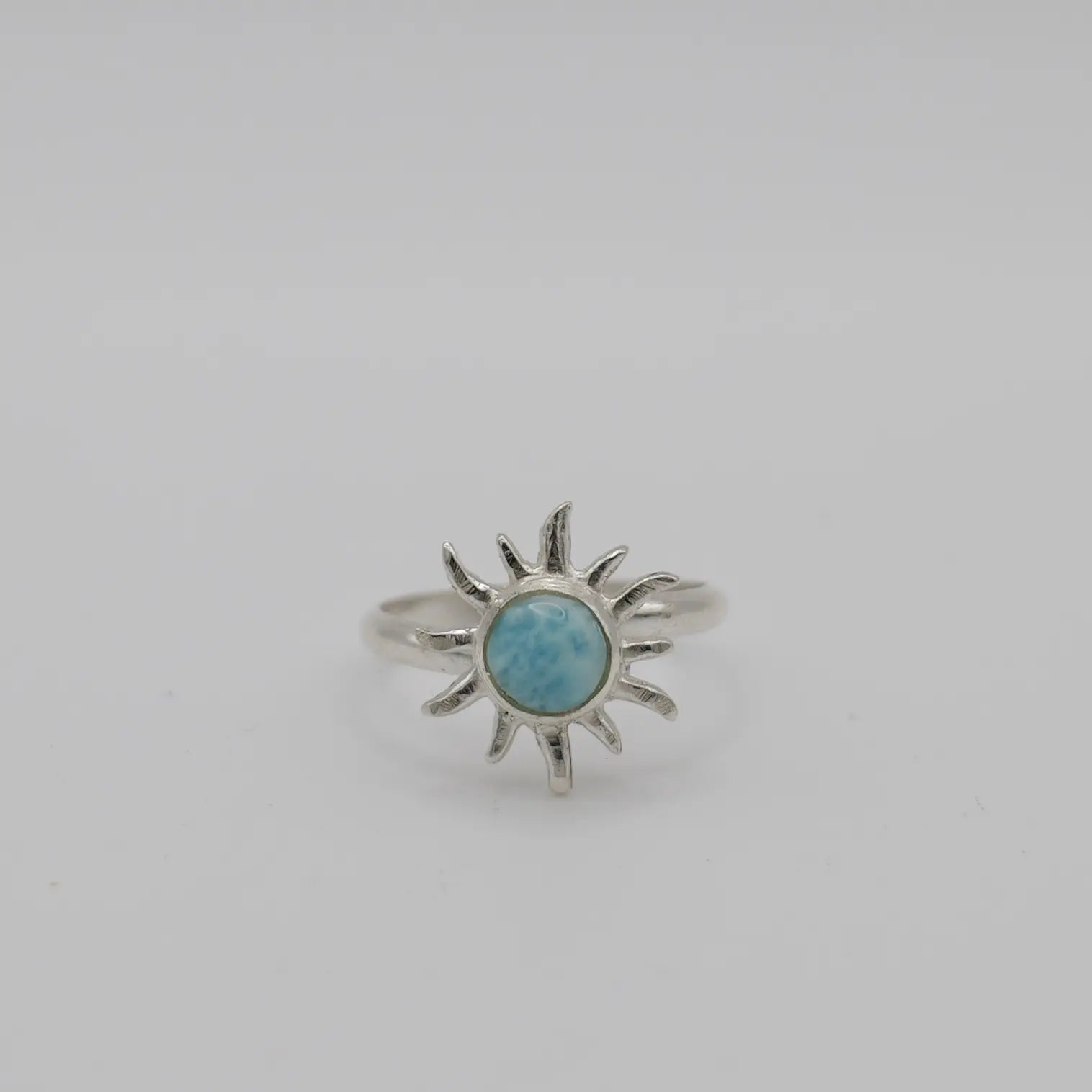 Bague SOL ajustable en argent 925 avec une pierre de Larimar.