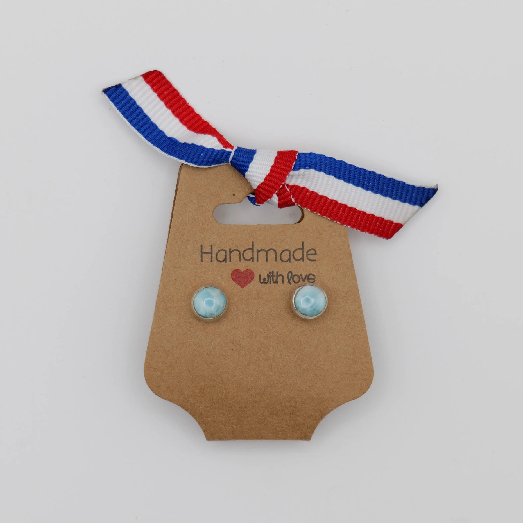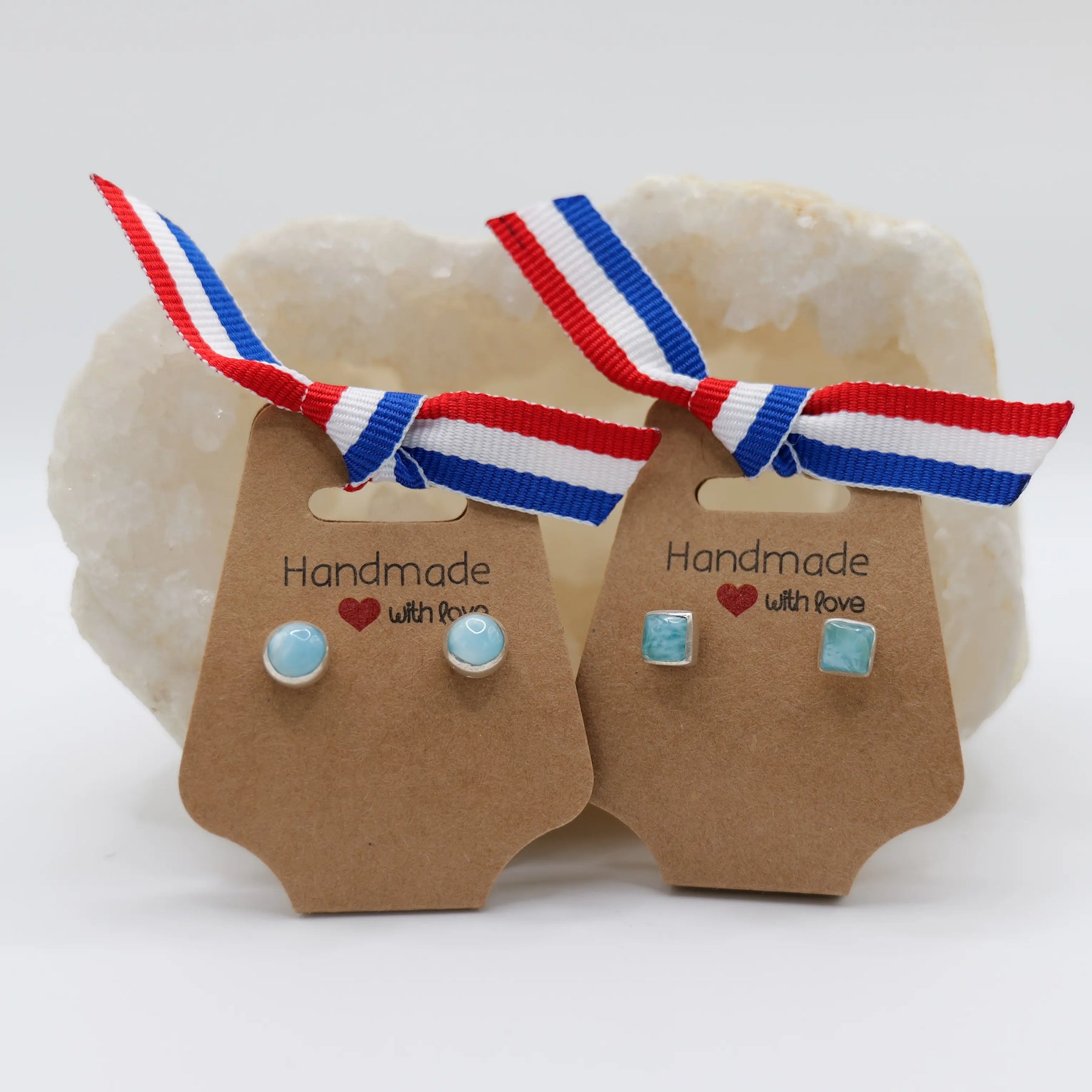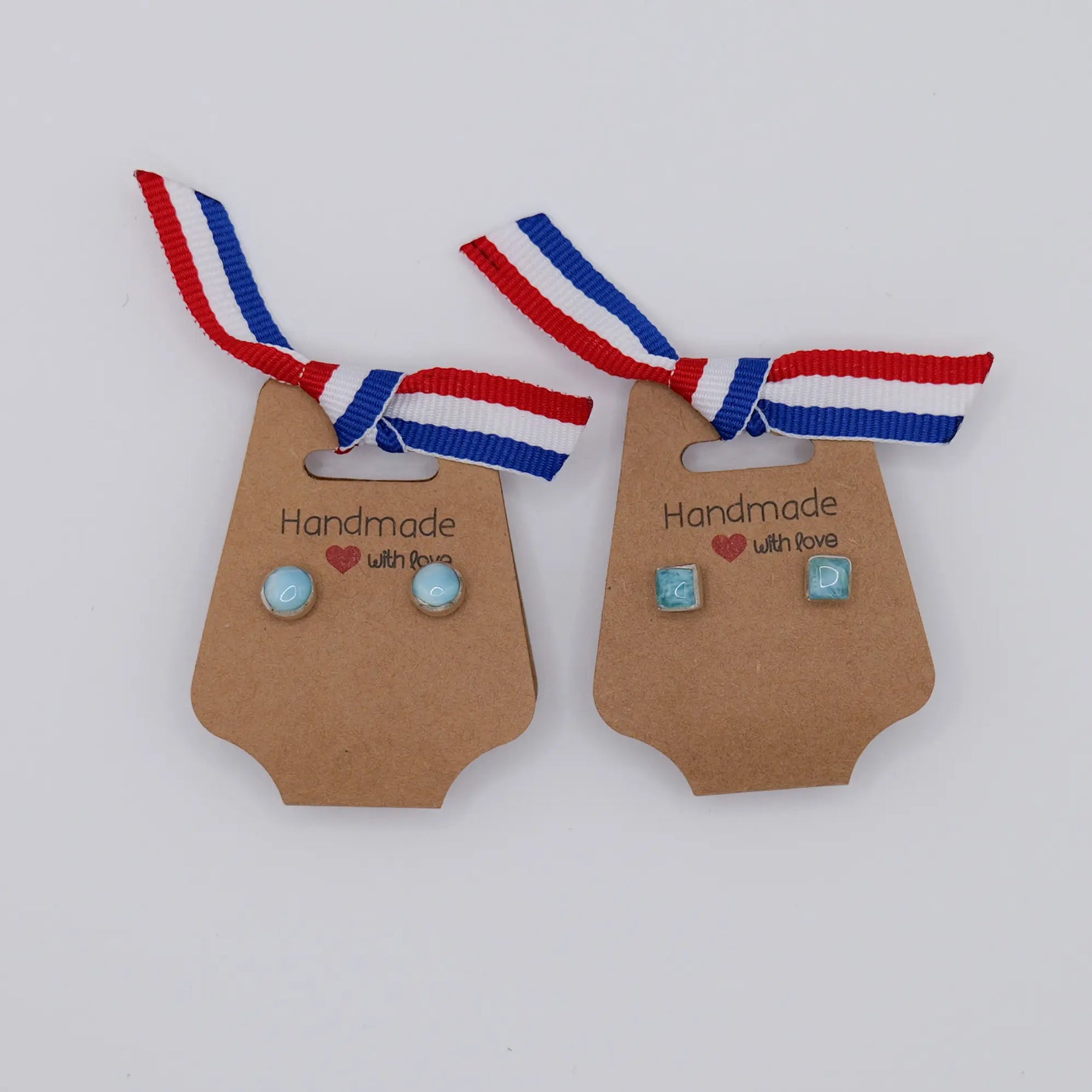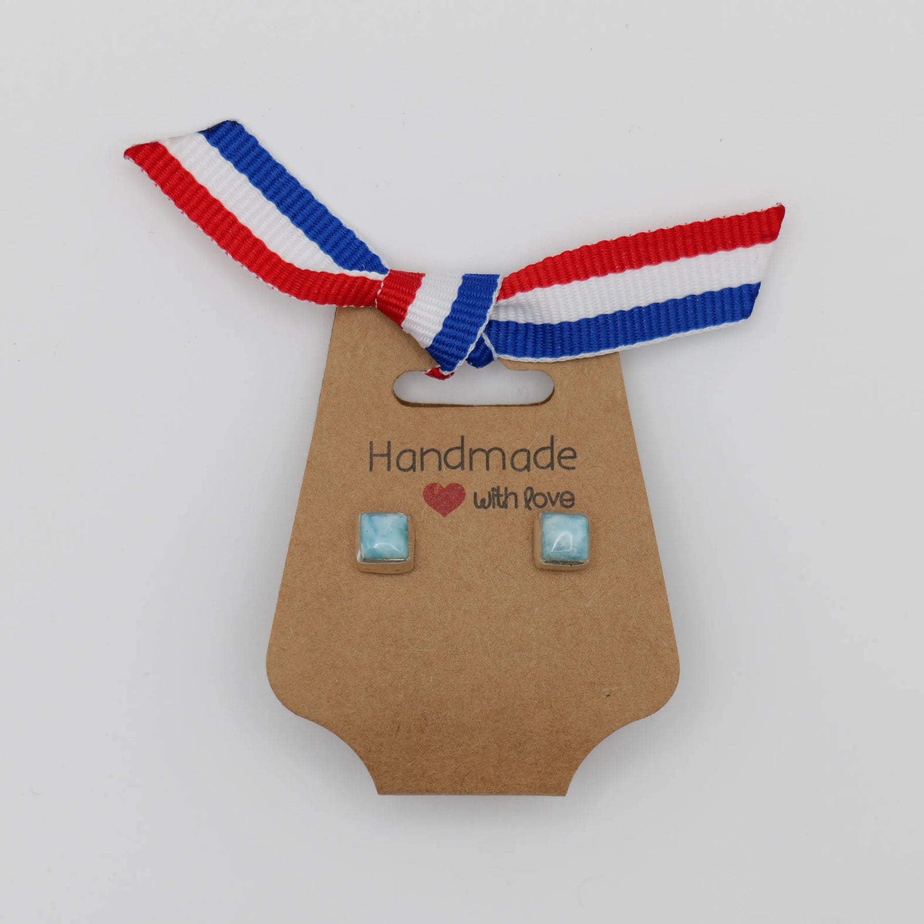 Puces d'oreilles PUCES OCOA en argent 925 avec son cabochon en pierre de Larimar de forme ronde ou carrées