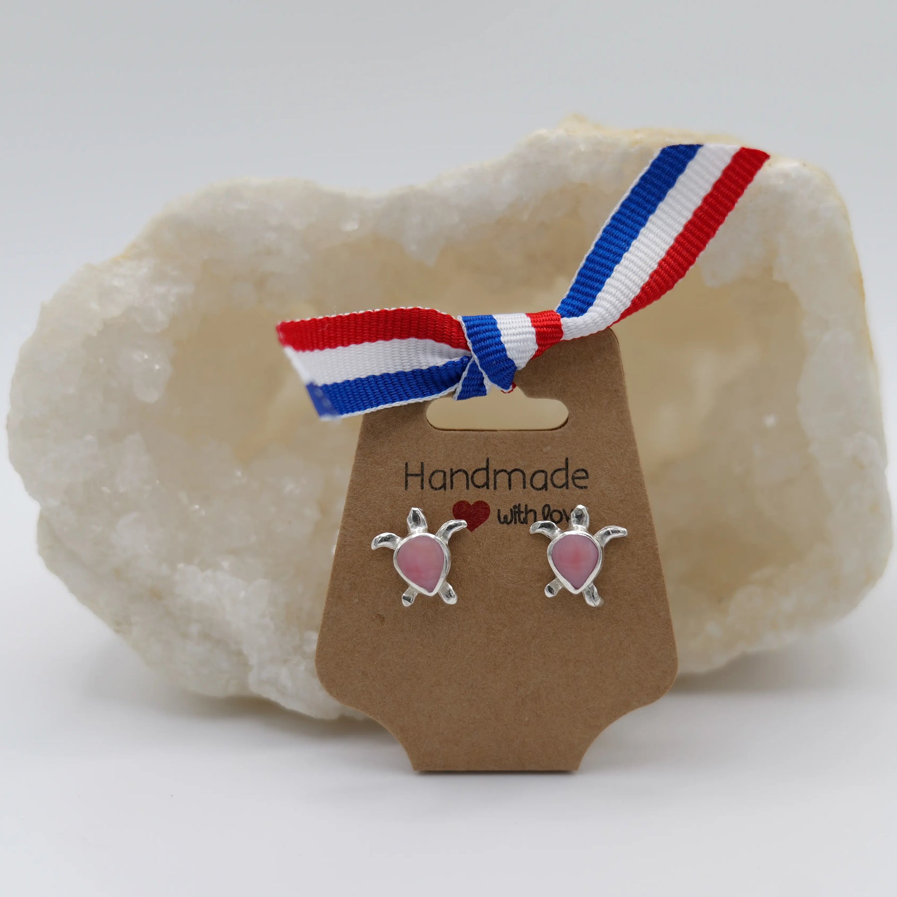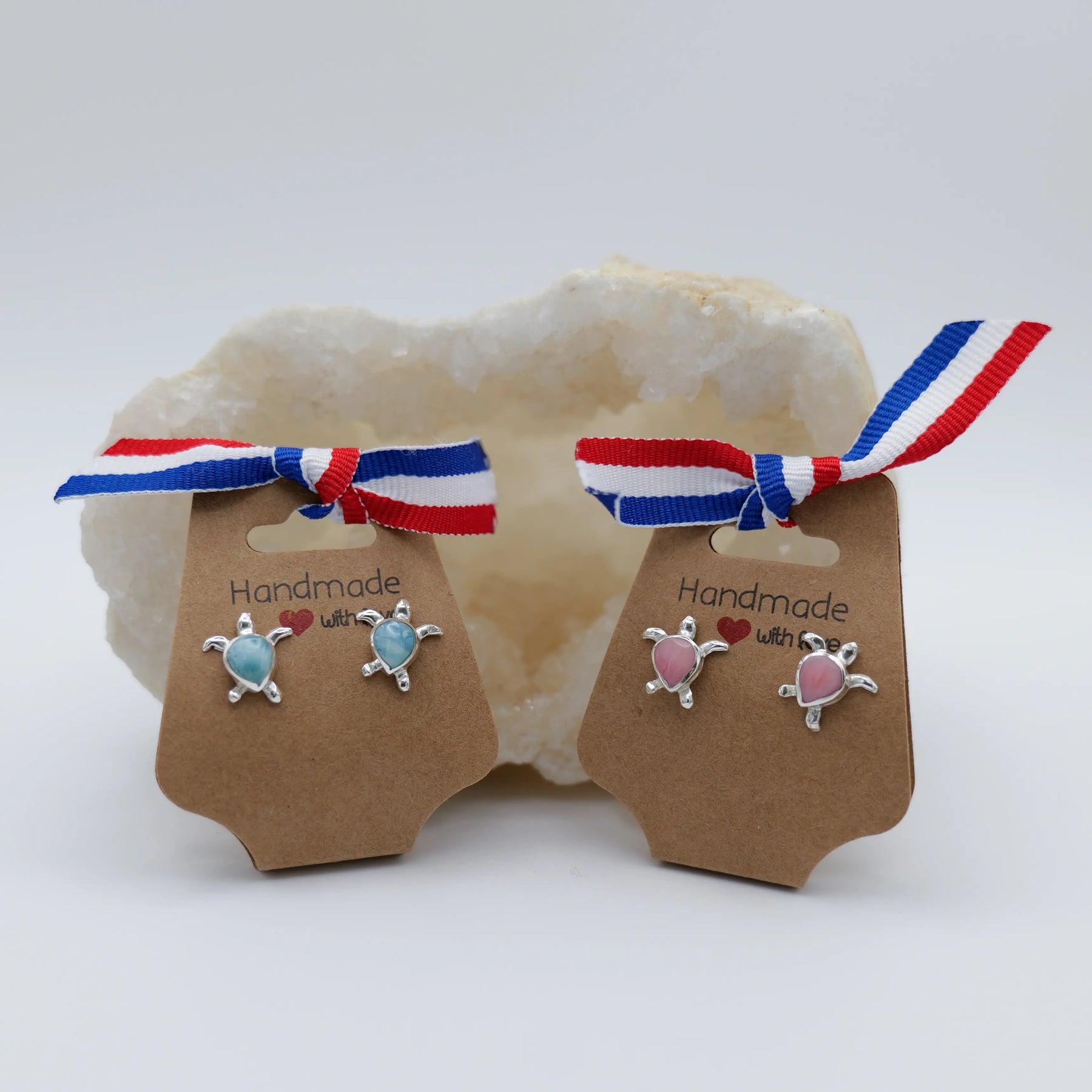 Puces d'oreilles TORTUGA en argent 925 avec son cabochon en pierre de Larimar ou en coquillage de Lambi.