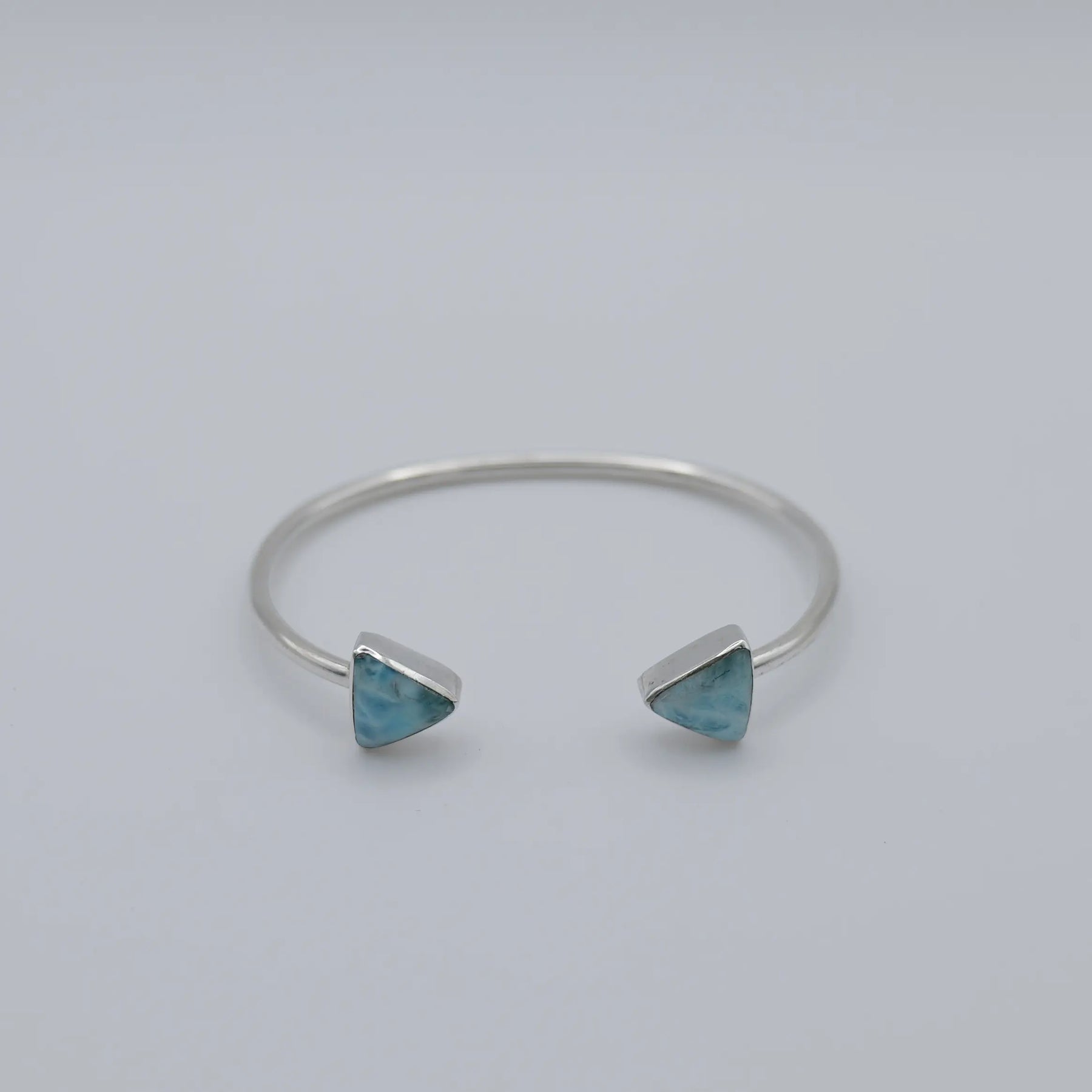 K++Bracelet jonc en argent 925 avec du Larimar taillé en triangle sur chaque extrémités.