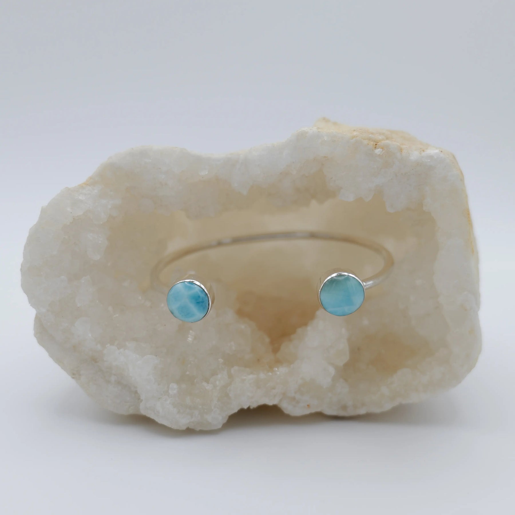 Superbe Jonc fait artisanalement avec deux pierres de Larimar rondes serties sur chaque extrémité.